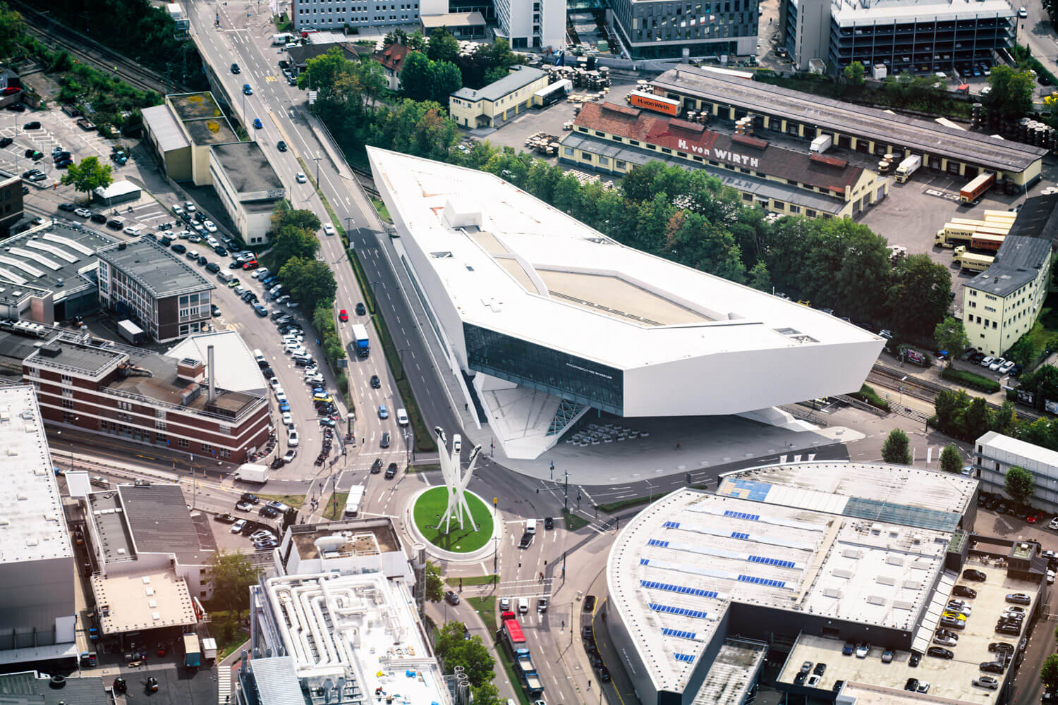 In Degerloch ragt der berühmte Stuttgarter Fernsehturm in den Himmel – ein Meilenstein des modernen Turmbaus. Wir überfliegen das markante Mercedes-Benz Museum in Untertürkheim, architektonisch wie historisch ein Highlight.