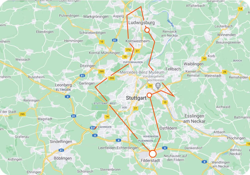 In Zuffenhausen fasziniert das futuristische Porsche Museum, das wie eine schwebende Skulptur wirkt. Zum Abschluss erwartet uns mit Schloss Solitude ein weiteres Juwel spätbarocker Baukunst, romantisch in Gerlingen gelegen.