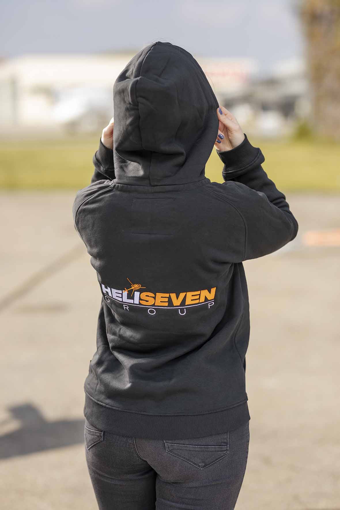 Unser schwarzer Hoodie der Marke NIMBUS NORDIC® besteht aus flauschigem Bio-Baumwollmischgewebe. Die langstapelige, gekämmte Baumwolle sorgt für eine langlebige Qualität. Der trendige Hoodie besitzt über funktionelle Details, wie die geteilte Kängurutasche, mit dem Reißverschlussfach auf der rechten Seite und einer doppellagigen Kapuze. Die hochwertige Bestickung mit dem HELISEVEN GROUP-Logo auf dem Rücken und dem orangefarbenen Helikopter auf der linken Brustseite stimmt das Design des Kapuzenpullovers perfekt ab und macht ihn zum wahren Eyecatcher. Das Modell wird von unseren Piloten gerne bei Ihrer Arbeit und in der Freizeit getragen.