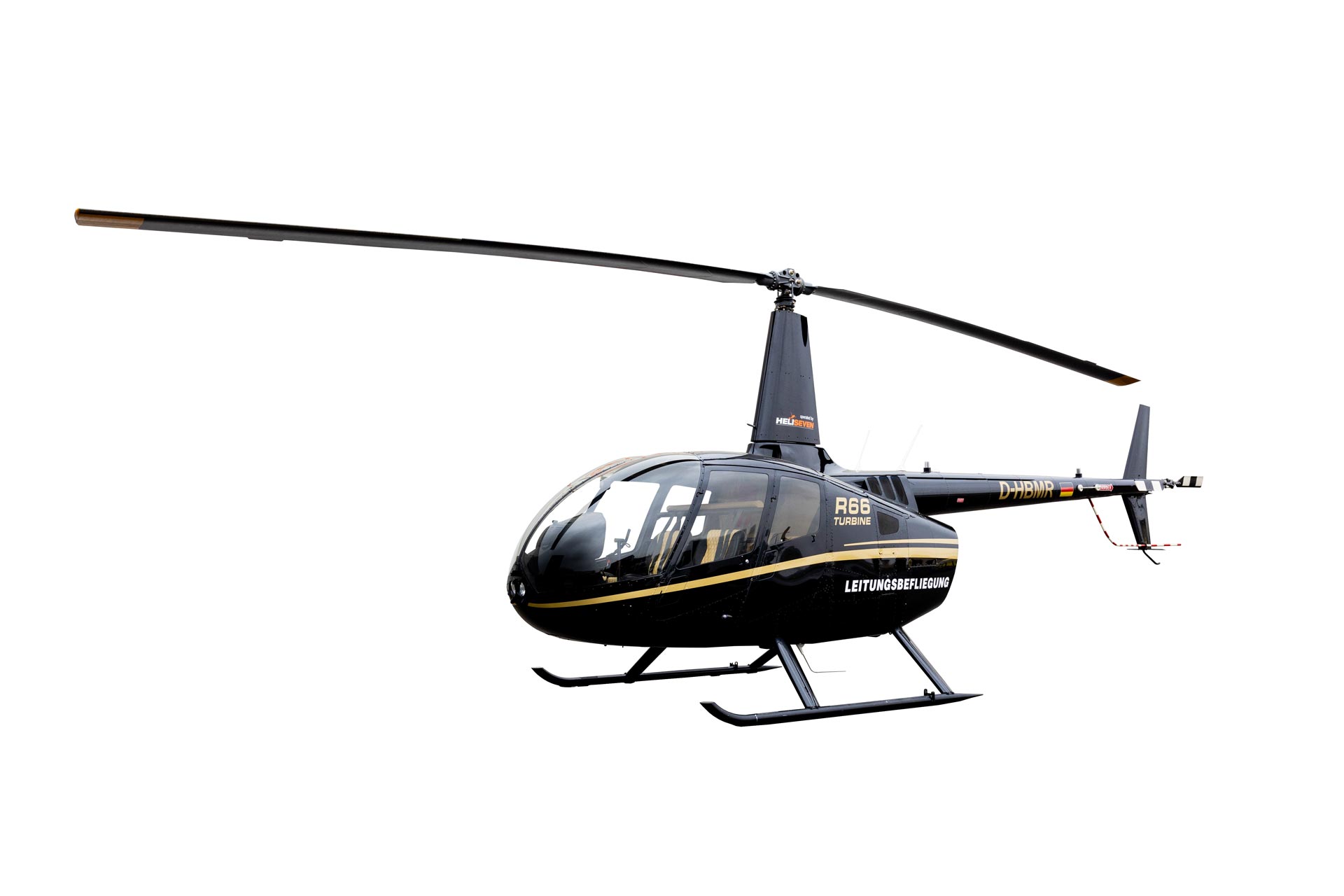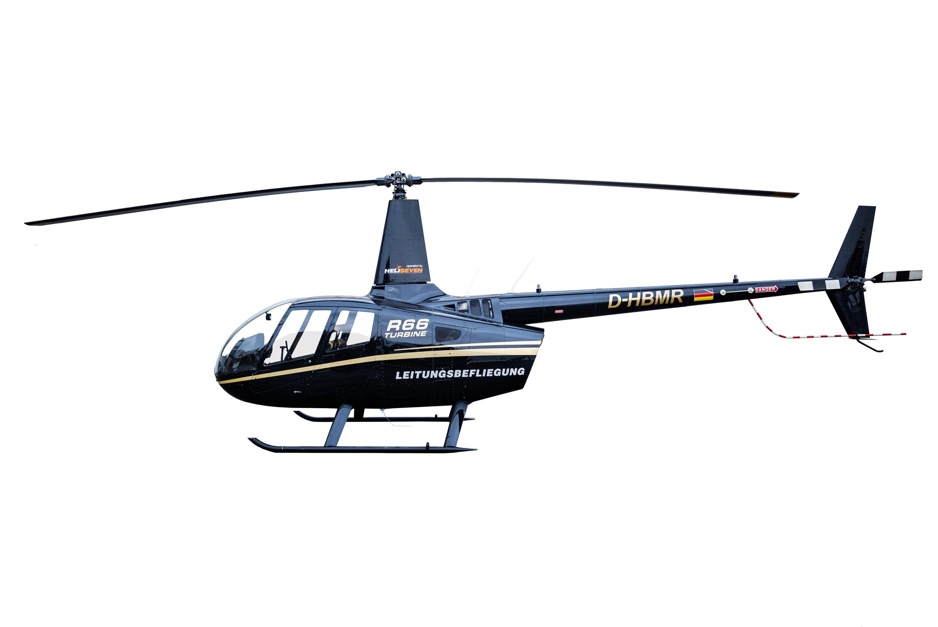 Die Robinson R66 ist die auf der R44 basierende weiterentwickelte Variante mit Turbinenantrieb und einem Passagiersitz mehr. Die Turbine von Rolls Royce macht die R66 leistungsstark, außerdem hat sie mit 4+1 einen Passagiersitz mehr.
